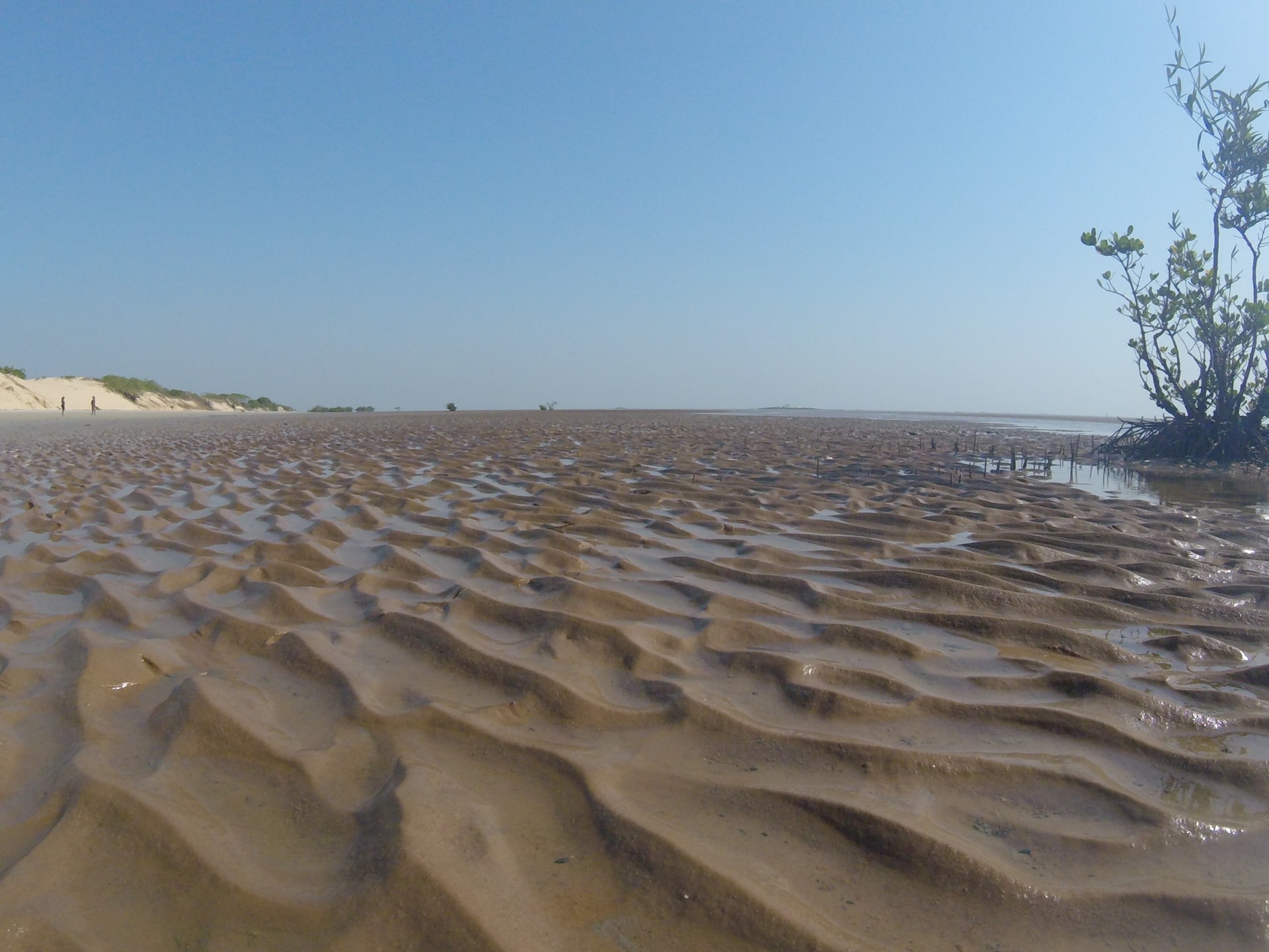 A nossa anfitriã, Dona Domingas, mulher do tio Cumeré, foi incansável. Depois de voltarmos da praia…praia imensa que estava apenas para nós as 4! Passeamos pela imensa praia de N’Djant sem avistar viva alma. Quando o sol se estava a pôr, apareceram alguns pescadores para aproveitar a maré baixa e ir buscar os peixes que, entretanto, ficaram presos nas armadilhas. Ainda trocamos algumas impressões com um grupo de crianças que apareceu para brincar na praia no fim da tarde.